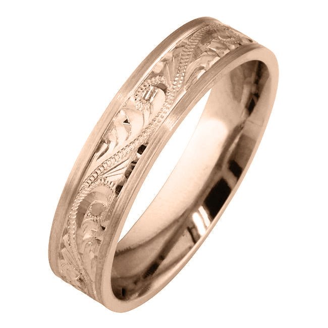 5mm Hand Engraved Paisley Pattern Wedding Band or Engagement Ring in 18ct Rose Gold