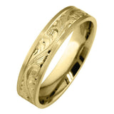 5mm Hand Engraved Ring with Paisley Pattern in 18ct Yellow Gold