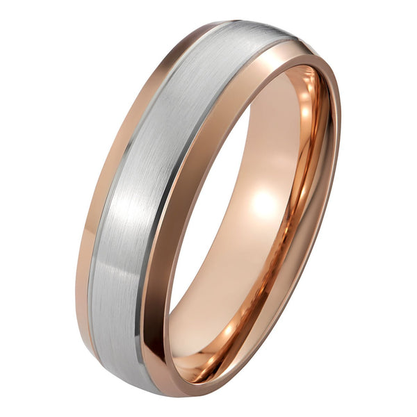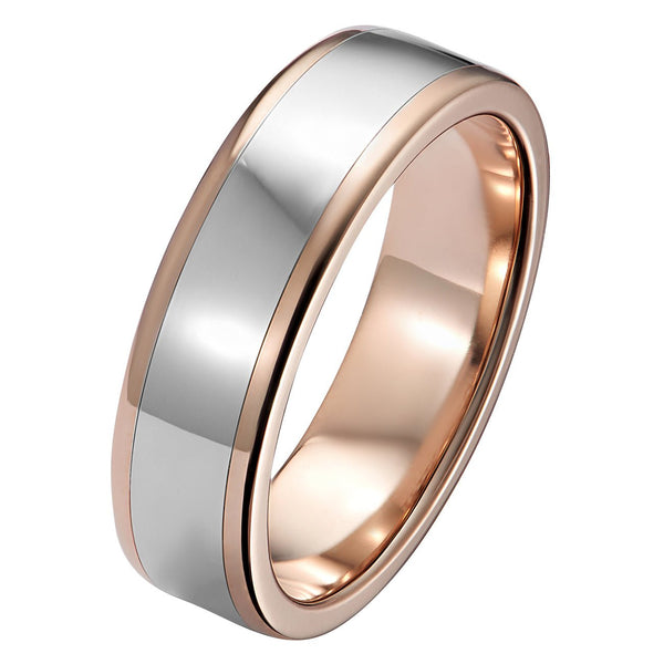 6mm Flat Court Rose Gold and Platinum Men's Ring with Chamfered Edges