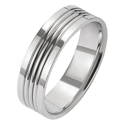 6mm Platinum Flat Court Multi-Groove Wedding Ring