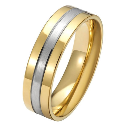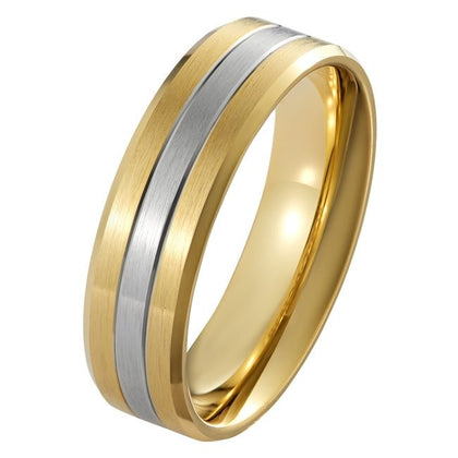 6mm Two-Tone Men's Wedding Ring in Platinum & Yellow Gold with Stepped Edges