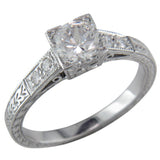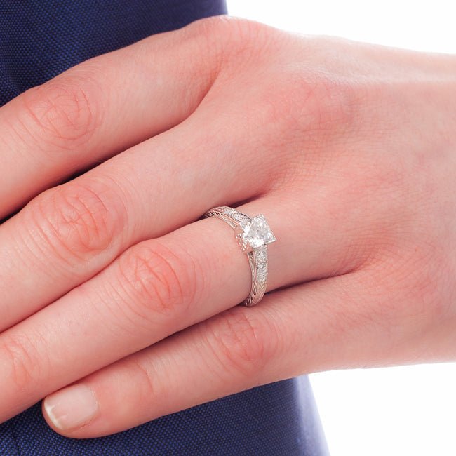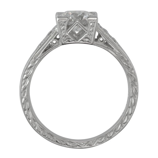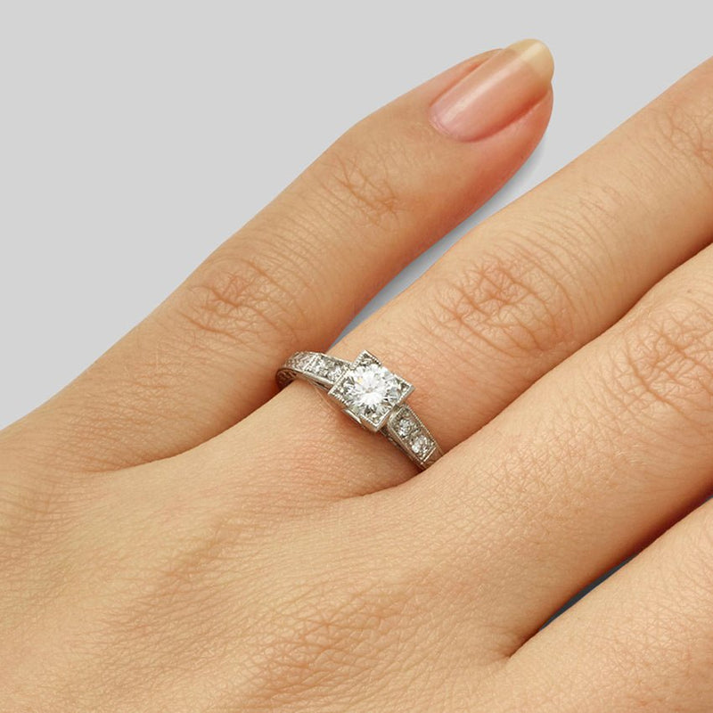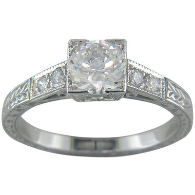 Engraved Art Deco Engagement Ring with Diamond Set Shoulders