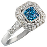 Art Deco Radiant Cut Aquamarine and Diamond Cluster Ring in Platinum