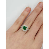 Art Deco Style Emerald and Diamond Halo Cluster Ring