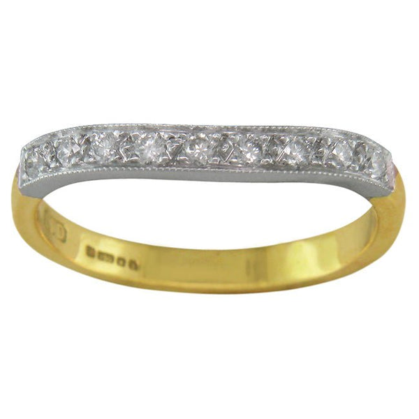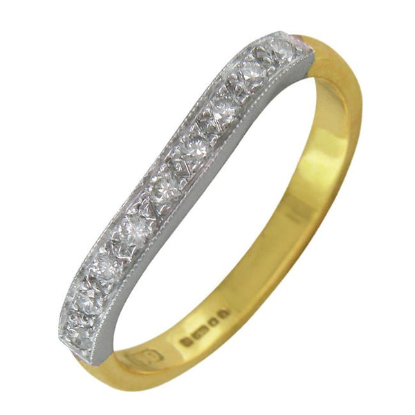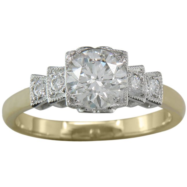 This two-tone engagement ring has the diamonds set in platinum leading to a band of 18ct yellow gold. This is an Art Deco style ring that is based on an original vintage ring from the 1930s.