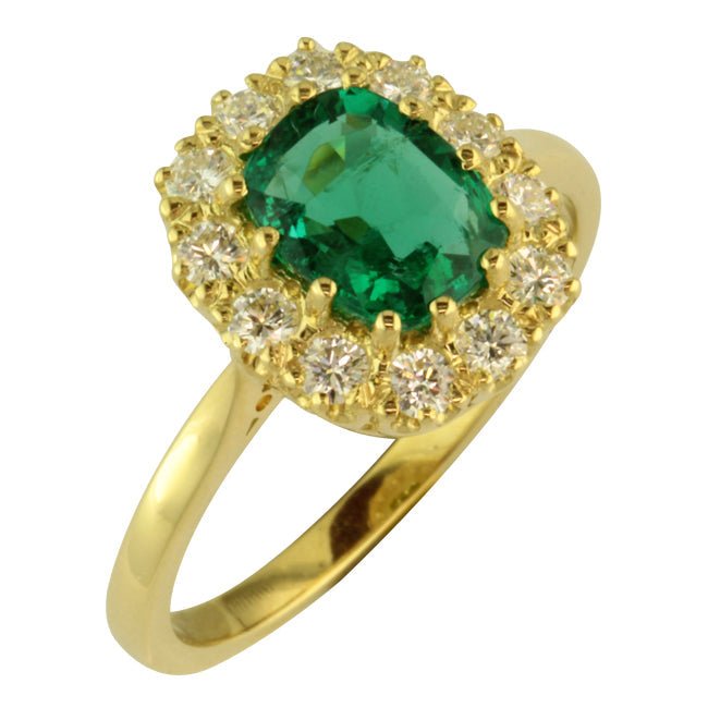 Bespoke Emerald and Diamond Cluster Ring in 18 carat Yellow Gold