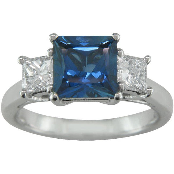 This impressive three stone ring features an oval blue sapphire with two high quality round diamonds. Each diamond has a GIA grading report. We worked closely with our client to produce the ideal ring for his fiancee.