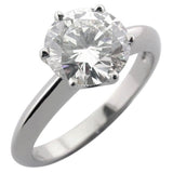 The design of this solitaire diamond engagement ring was chosen because of the knife edge band. The GIA graded round diamond is held with six claws in a strong, yet discreet setting. The engagement ring will sit comfortably with a close-fitting wedding ring underneath the diamond.