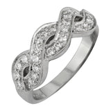 This cross over diamond ring in 18 carat white gold features a double band of round diamonds, all set in white gold.