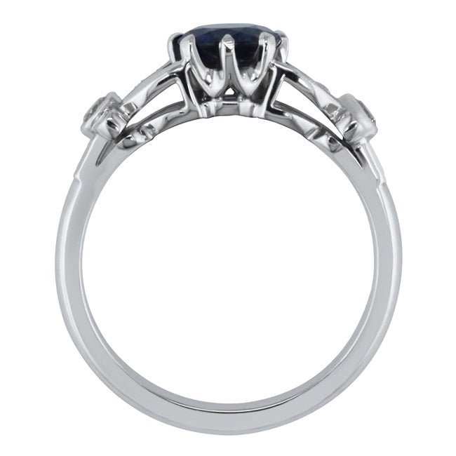 Floral ring with blue sapphire and diamond leaves