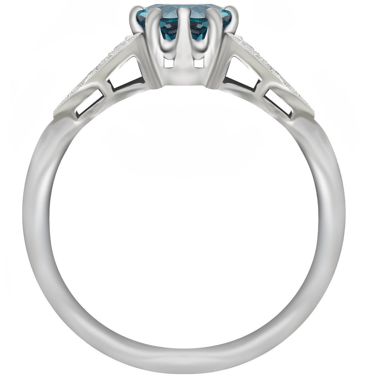 Teal sapphire engagement ring in vintage style