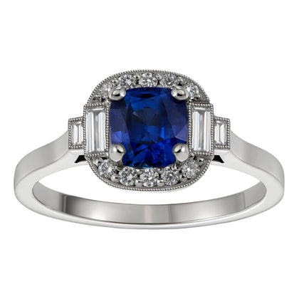 Vintage Inspired Sapphire and Diamond Cluster Ring in Platinum