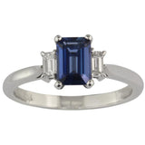 Emerald Cut Sapphire and Diamond Three Stone Ring