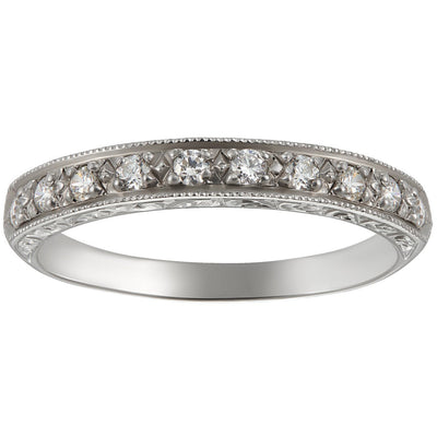 3mm Platinum Engraved Wedding Ring with 10 Diamonds