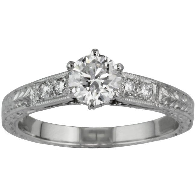 Hand Engraved Engagement Ring in Vintage Laurel Pattern