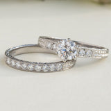 Diamond engraved engagement ring with diamond wedding ring