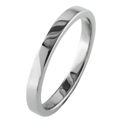 This 2.5mm flat profile wedding ring is made in platinum 950. This easy-to-wear ring is flat on both the inside and outside.