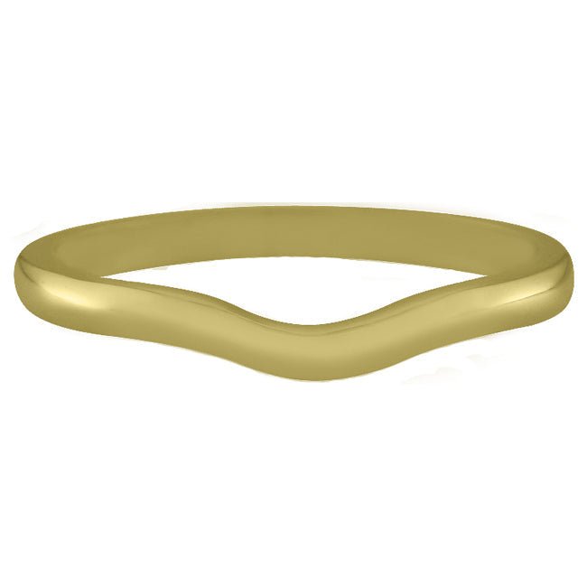 This 2.3mm yellow gold wedding ring is gently shaped and curved to make a bridal set with rings from our Art Deco and Edwardian collections.