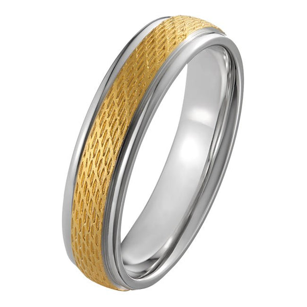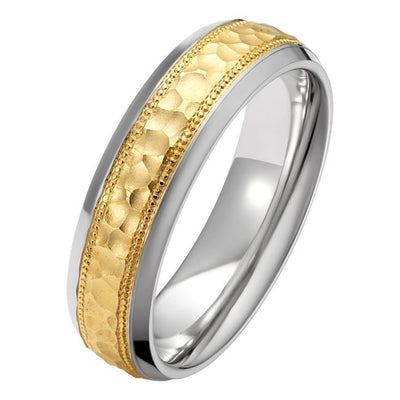 6mm Two-tone Hammered Yellow Gold Men's Ring with Platinum Borders