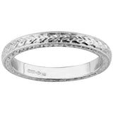 Laurel Engraved Wedding Ring in 18ct White Gold