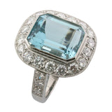 Bespoke Octagonal Aquamarine and Diamond Cluster Ring
