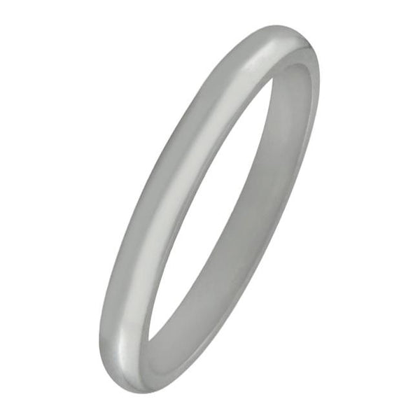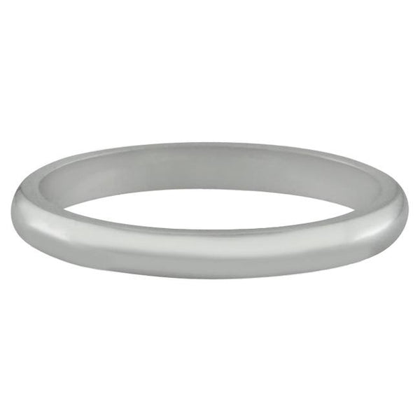 Plain 2mm Wide D-shape Wedding Ring in White Gold