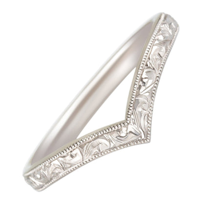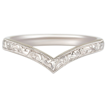 Platinum Diamond Wishbone Wedding Ring with Engraved Paisley Pattern