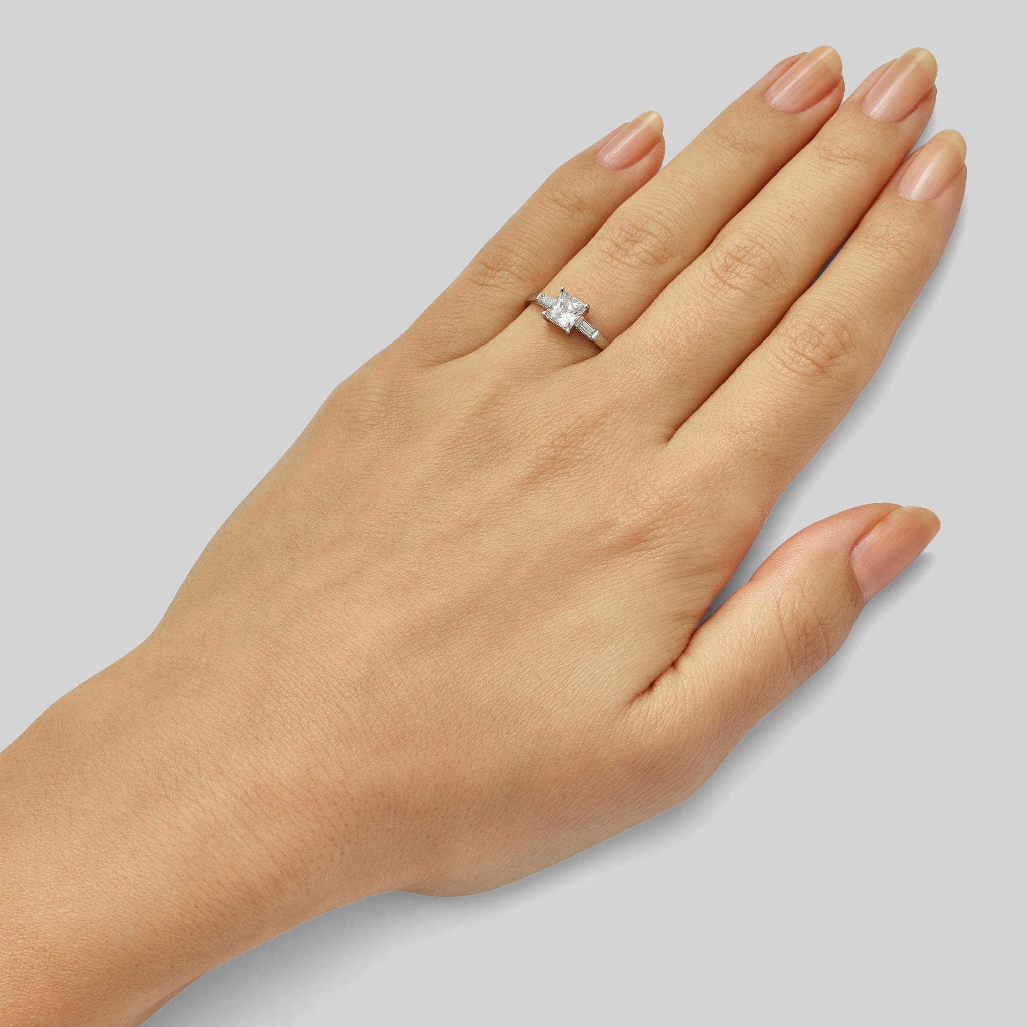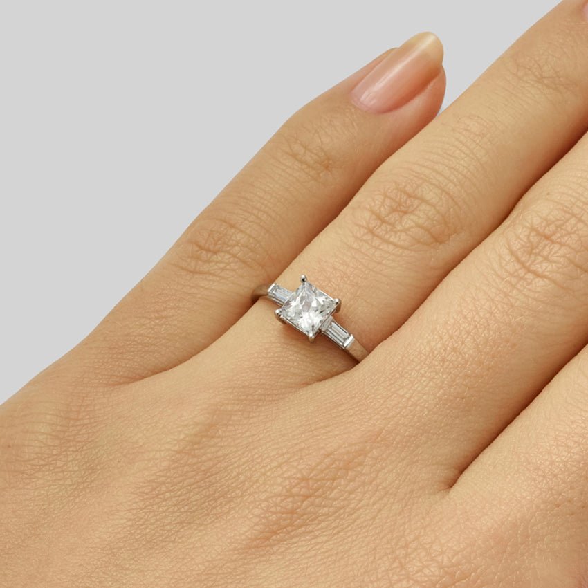 Princess Cut Diamond Ring with Baguette Diamond Side Stones