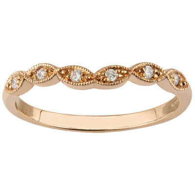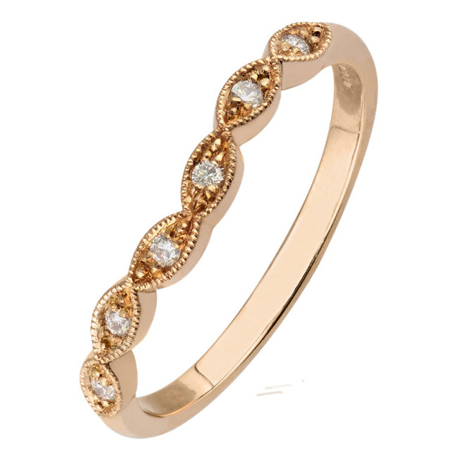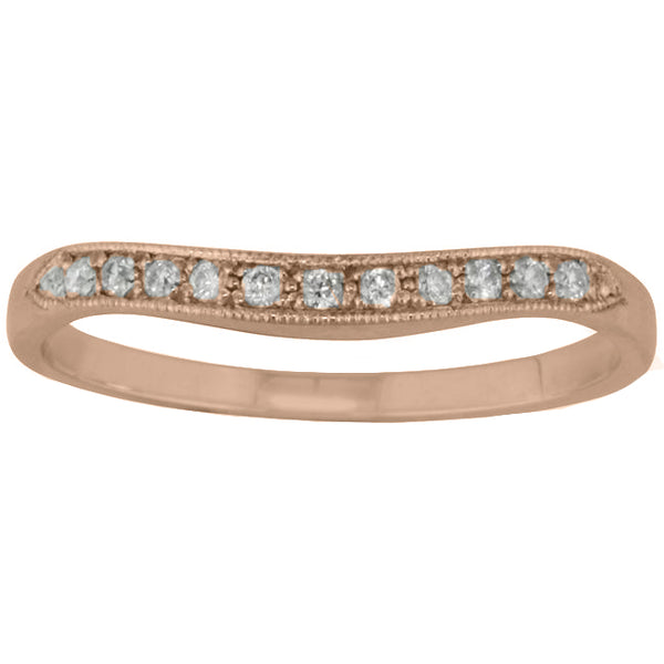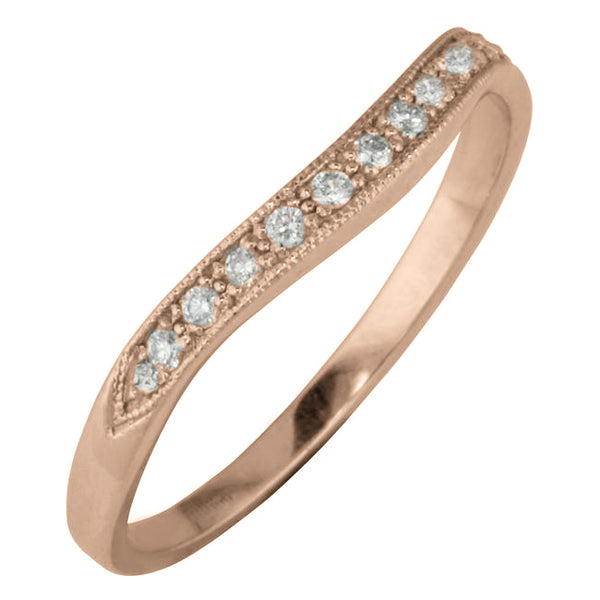 The 18ct rose gold diamond wedding ring is shaped to curve around the gemstone in your engagement ring.