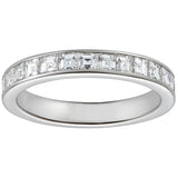 This 3mm square step-cut diamond wedding ring in platinum is set with 15 diamonds weighing 0.70 carat in total.