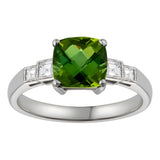 Cushion cut tourmaline ring with diamonds in 18ct white gold
