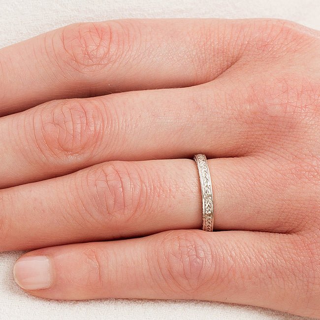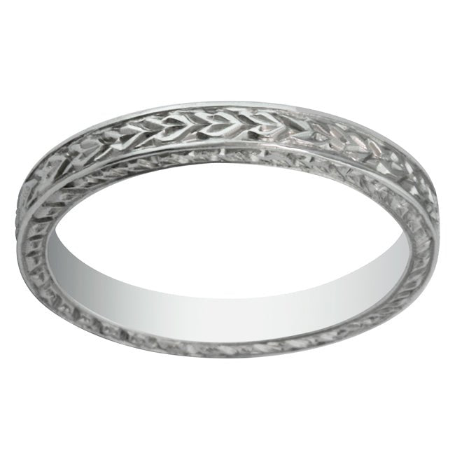 Vintage Design Laurel Engraved Wedding Ring in Platinum