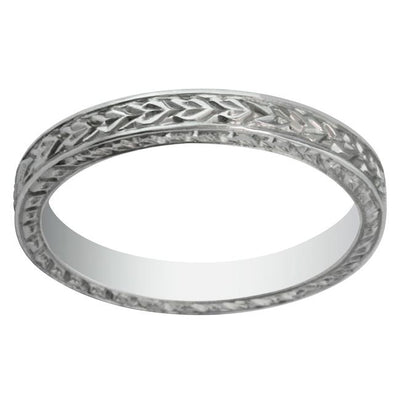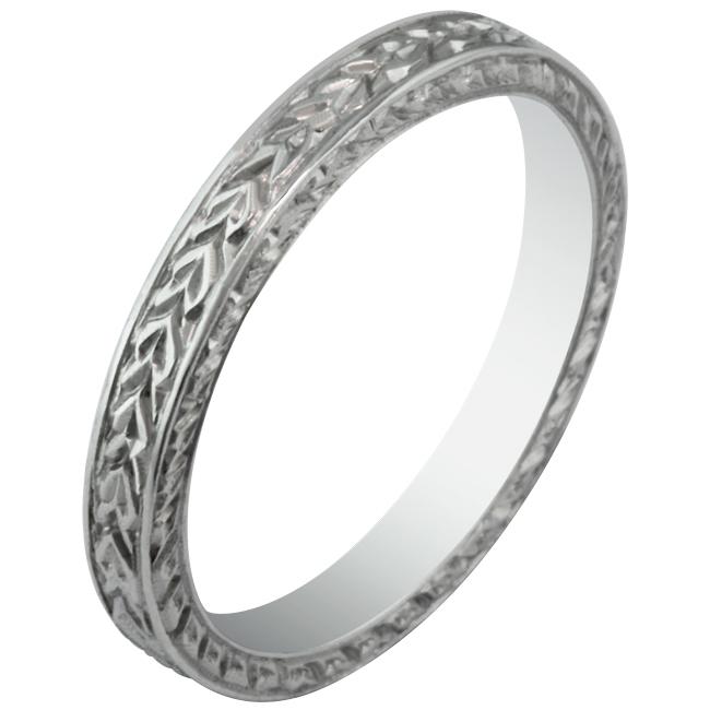 Vintage Design Laurel Engraved Wedding Ring in 18ct White Gold