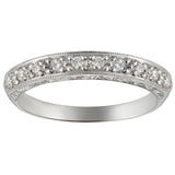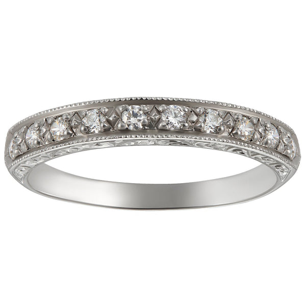 3mm Vintage Style Engraved Wedding Ring with 10 Diamonds in White Gold