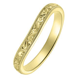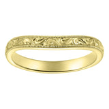 2.5mm Yellow Gold Shaped Wedding Ring with Scroll Engraving and Millegrain