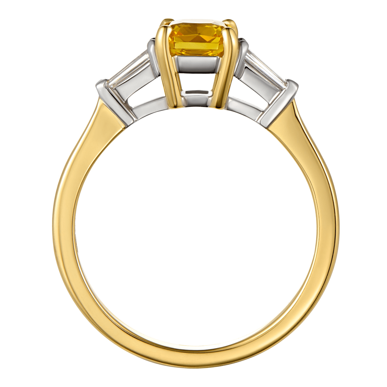 Yellow Sapphire Engagement Ring with Tapered Baguette Diamonds