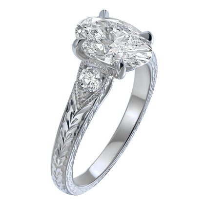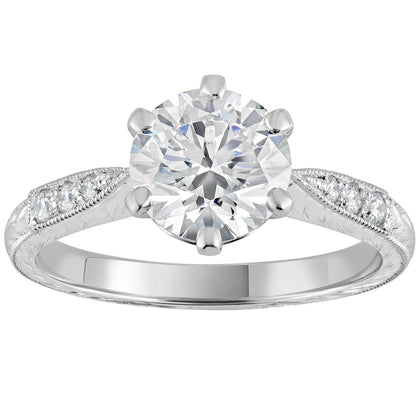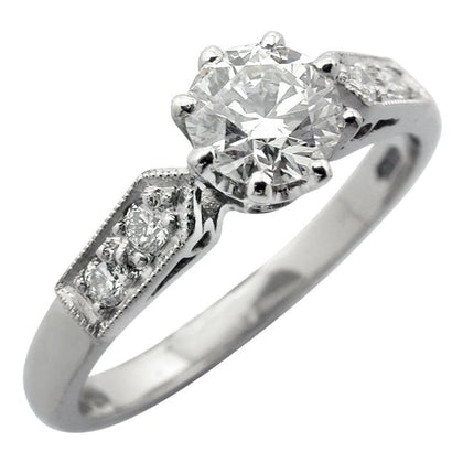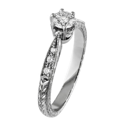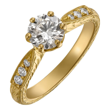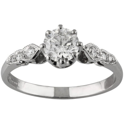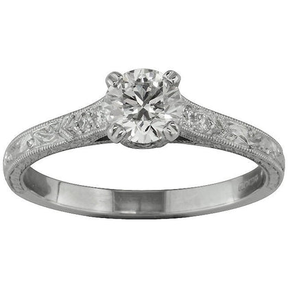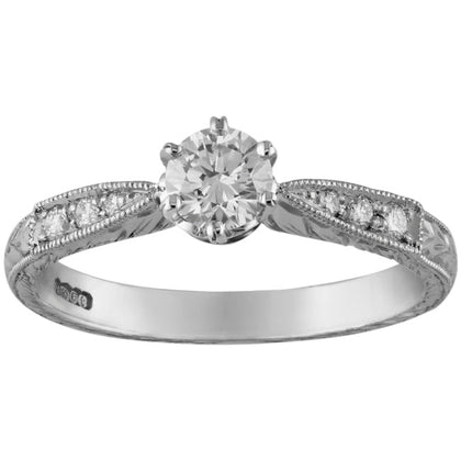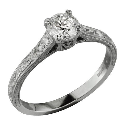 Discover our diamond engagement ring collection with vintage style and more contemporary designs. Each ring is created by hand in Hatton Garden, London, using traditional manufacturing methods as an echo to our decades of expertise. Our exclusive designs include classic solitaire, three-stone rings or diamond cluster halo rings, complemented by a vintage-inspired engraved band design with floral and scroll patterns. View our complete natural diamond ring collection online today with complimentary UK shipping, or book an appointment to visit our team of experts to create a bespoke design and try on our collection of rings.