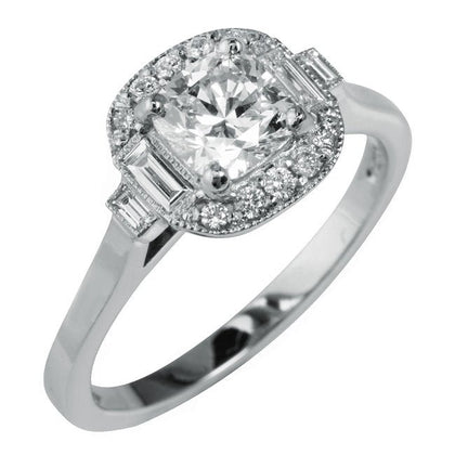 Today, vintage ring designs are made with single baguette cuts either side of the main gemstones or graduated in a series of diamond steps. For something just a bit different, the tapered baguette is wider at one end and makes an unusual engagement ring when highlighting a central gemstone.