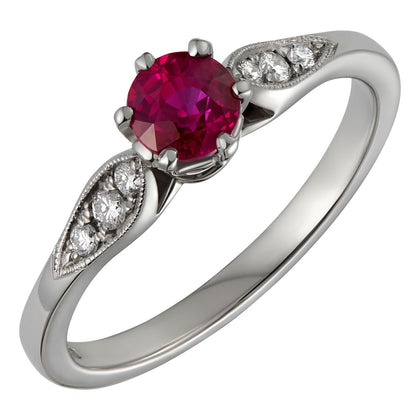 Ruby has always been a desirable gemstone as it has all the properties a valuable gem should possess: rarity, a superb pure colour, outstanding hardness and excellent brilliance. Good quality rubies in large sizes are the most valuable of all coloured gemstones. Choose to enjoy this magnificent stone for a lifetime in your ruby ring.