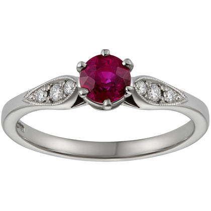 Red is the colour of fire and blood and therefore a ruby is linked to the emotions of love, ardour and liveliness. The gem glows with an intense warmth and wearing a ruby can express a passionate, unrestrained love. Rubies occur in many different shades of red from deep, rich red to a colour with overlays of orange, brown, pink or purple. The gem’s name is derived from the word ruber, the historic Latin term for red. Ruby engagement rings are an ideal choice for women who love red.