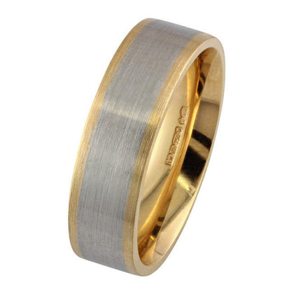 Explore the two-tone men's wedding rings collection, expertly made in the UK with meticulous precision. With their distinctive blend of two metals, these rings provide a striking contrast that catches the eye. Every ring in our collection is hallmarked for metal purity, ensuring the highest quality in platinum 950 and 18-carat gold.