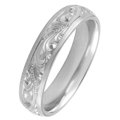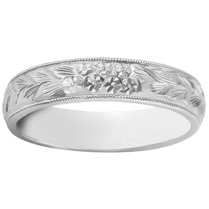 Browse one of the most unique collections of white gold wedding rings for women in the UK. From simple and plain designs to diamond white gold wedding bands, all rings are made by us in Hatton Garden, London. Our white gold rings, including the unusual vintage-style engraved rings with floral patterns, can be made in the ring size of your choice and widths from 1.80mm, 2mm, 2.5mm and wider.