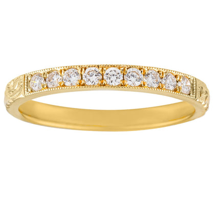 Our yellow gold wedding rings for women are perfect for your special day. Since 1890 and for thousands of brides, our wedding bands have been designed exclusively by us for durability and elegance and will be lifelong treasures. Discover unique vintage-inspired rings like our engraved bands with or without diamonds. Select an intricate yellow gold diamond wedding band for added sparkle. Choose an 18ct plain yellow gold band for a minimalist look.
