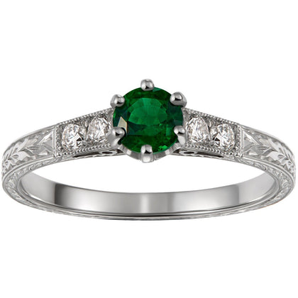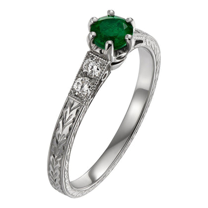 One of the most memorable Victorian engagement rings ever made was Prince Albert's gift to his bride, Victoria in 1840. It was a snake - a symbol of eternal love - featuring her emerald birthstone. Emeralds added to the vibrancy of early 20th century Art Deco rings, especially when placed next to diamonds, often baguette cut. Couples also buy emerald rings to celebrate their 20th and 35th wedding anniversaries.