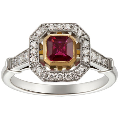 The Art Deco period was one of the most creative periods of jewellery manufacture in the 20th century. Our Art Deco cluster ring collection is created from original ring designs or from vintage rings we have collected over the decades. Geometric patterns using clear-cut, bold shapes characterized the rings of the 1920s and 1930s. There was often an architectural feeling to the Art Deco ring style.
