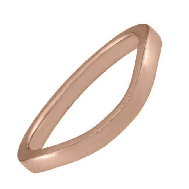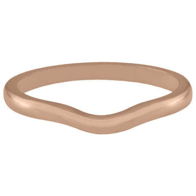 This shaped wedding ring in 18ct rose gold is designed to gently curve around the gemstone in your engagement ring. The D-shape band has a width of 2.00 mm.