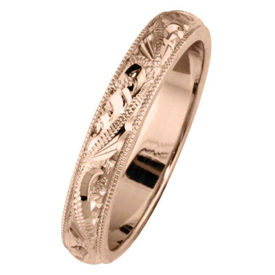 3.5mm Patterned Hand Engraved Paisley Wedding Ring in 18ct Rose Gold