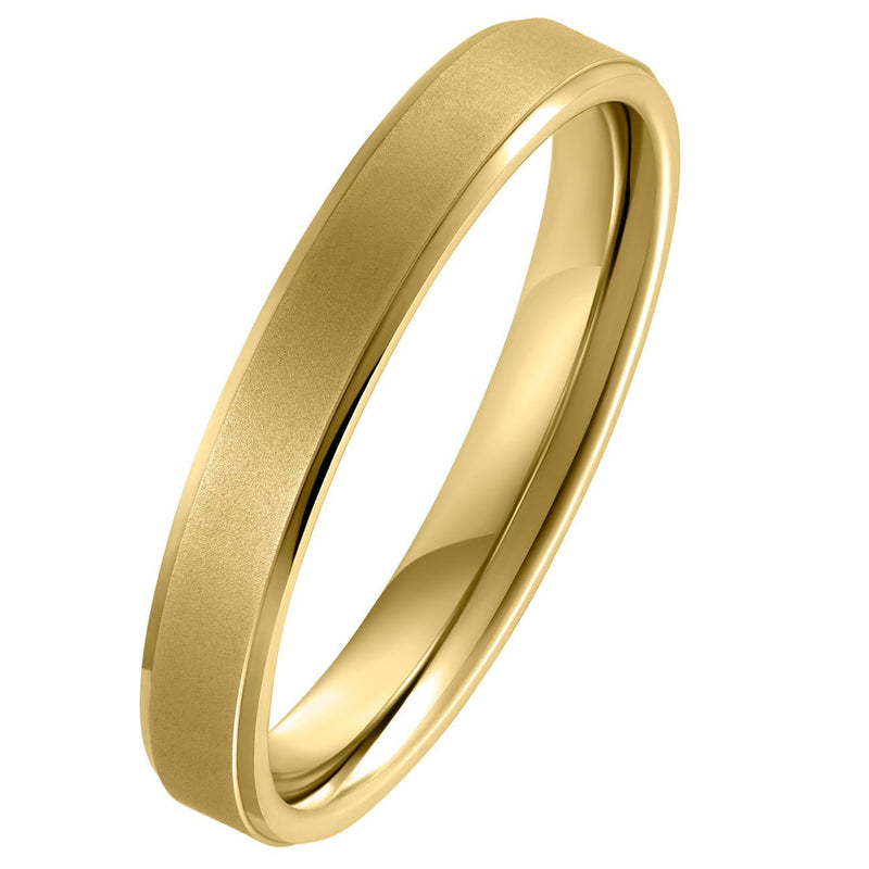 3mm Brushed Men's Wedding Band in Yellow Gold with Polished Bevelled Edges