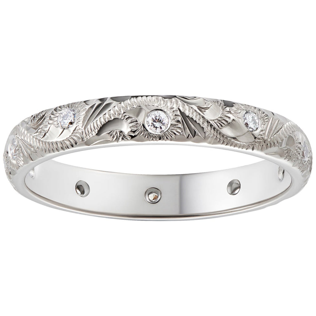 3mm Paisley Engraved Wedding Band with 10 Diamonds in Platinum