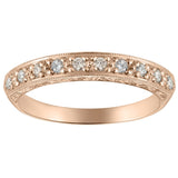 Vintage Style Engraved 18ct Rose Gold Wedding Ring with 10 Diamonds